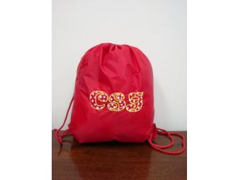 For your favorite CSG fan!  Red nylon cinch back pack with CSG funky dot embroidery.