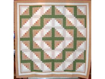 Impressive quilt of green, tan, and gold. This traditional pattern looks fantastic in this color combination.