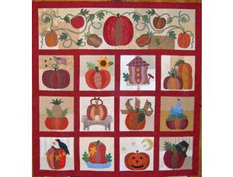 This quilt is a collimation of many bee members coming together to make this special quilt.  It is machine applique with custom machine quilting.  This will make the fall a very special time to celebrate with this beautiful pumpkin quilt.