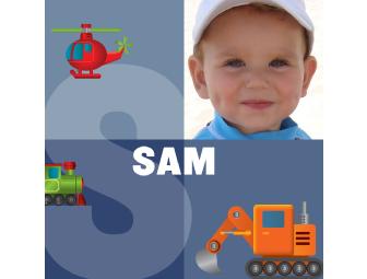 Personalized Canvas with kid's photo, name, initial and other illustrations. Dimensions: 15 x 15". Theme can be based on interest/hobby or on your kid's initial.