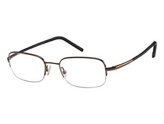These are men's designer eyeglass frames, semi-rimless in brown, metal