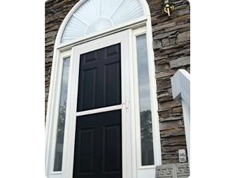 One Harvey Building Products Estate Series premium storm door. Estate Series storm doors are available in a variety of styles and colors, including features such as retractable screens, vents, and grilles.