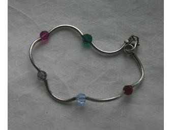 This lovely set includes a 17-1/2" "noodle" necklace and 7" "noodle" bracelet. The "noodles" are sterling silver embellished with Swarovski crystals in light and dark blue, red, teal, green, pink, pale green, and yellow. These fun colors let you wear this necklace and bracelet with any outfit!