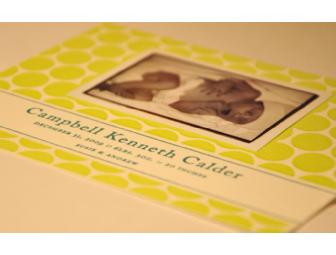 100 - 1 color letterpress wedding invitations or birth announcements. Size would be 4.5" x 5.5" and include envelopes at that size. If you would like a custom design and different size, we could put your winning bid price towards more custom work. We'll make your event memorable and help out deserving families at the same time!
