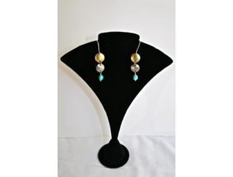 Sterling silver, stabilized turquoise, and brass on french wire.