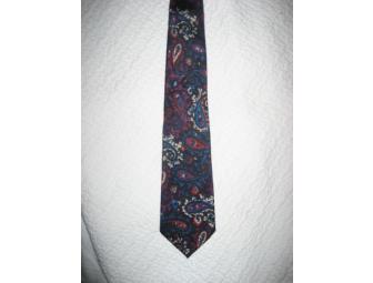 100% silk tie/Mens in a stunning black background with a vibrant colored pattern in shades of red, blue and purple