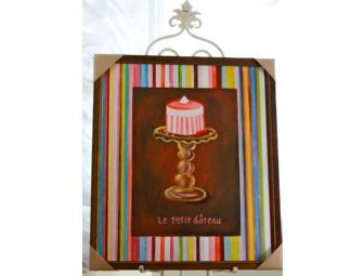 24" x 28" oil painting of raspberry cake entitled "Le Petit Gateau"