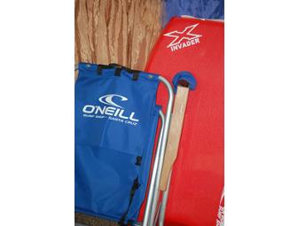 Get to the beach and have fun this spring with this red O'Neill Boogie Board and a blue O'Neill Sand Chair that doubles as a boogie board backpack!