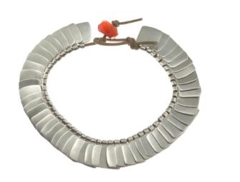 Full Flattened Sterling Silver Bracelet on Natural Cord with Fire Opal Button Closure, 2010