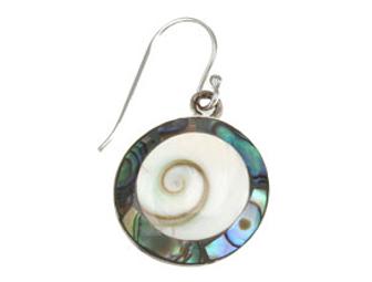 A pair of abalone and white shell earrings