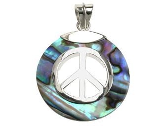 A sterling silver and abalone peace sign necklace, comes with chain.