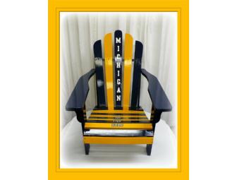 U of M fans will love this chair which is accentuated by "Michigan" on the chair back and "There's No Place Like Home" on the seat. Blue and maize background colors complete the chair and it is sealed with a clear coat for durability.