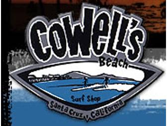 A gift certificate good for the rental of one surfboard and one wetsuit from Cowell's Beach Surf Shop.