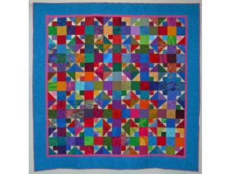 This quilt was created from a block challenge at the 2009 fall quilt retreat.  Each attendee contributed blocks to make this bright beautiful quilt.