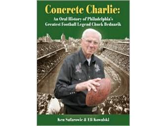 Copy of "Concrete Charlie:An Oral History of Philadelphia's Greatest Football Legend Chuck Bednarik" by Ken Safarowic & Eli Kowalski. Book is signed by Chuck Bednarik.