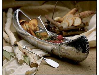 For serving your favorite treats, the Large Canoe Server is a whimsical gift for the home. Use to serve fresh veggies and favorite fruits. The measurements are approximately 23 inches in length, 6 inches in width, and 4 inches in height. Created in sand-cast and hand polished aluminum. Add style to your entertaining with this unique collection of serveware by Mariposa Brillante.
