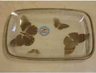 New Annieglass 11" x 7" gold-rimmed rectangle plate, with gold butterflies.