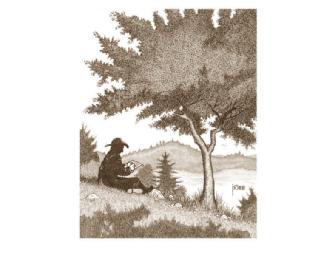 A high-resolution, fine quality art print of the cover art for the 2008 edition of the Concord Saunterer. This image depicts HDT sitting by the shore of Walden Pond writing in his journal on a hot summer afternoon. Print size is 8.5" by 11" in sepia ink on a parchment-toned stock. Print(s) can be signed if preferred. Ten (10) prints available for auction.
