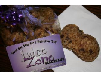 $10 gift card and 1 bag of 15 freshly made Juice Zone's Oatmeal - Chocolate Chip Cookies, made with all natural ingredients.