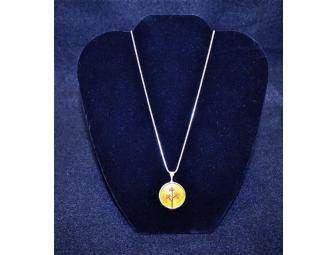 Pendant made of sterling silver, resin, heavenly bamboo stems & mustard seeds on a sterling silver chain