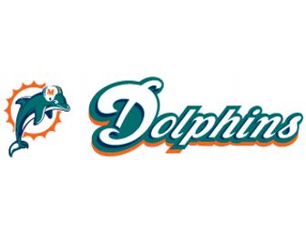 A Miami Dolphins gift pack consists of a variety of promotional items that we are sure you will enjoy. The package includes: 5x7 picture of Ronnie Brown, Dolphins bumper sticker, signed 8x10 of 2008 Miami Dolphins, signed 8x10 picture of 2009 Miami Dolphins, and a Dolphins pennant.