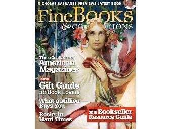 The Magazine for Book Collectors and Book Aficionados! Fine Books & Collections offers you the best insight into the world of collectible books, maps, and other artifacts of paper. You’ll be first in line to hear new voices, gain new insights, and get the most out of your passion for books.