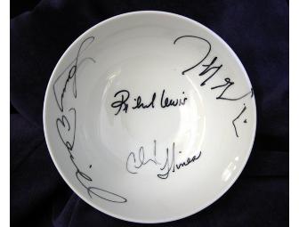 Curb Your Enthusiasm is an American comedy series starring Seinfeld writer, co-creator, and executive producer Larry David as himself. It is produced and broadcast by HBO. This bowl is signed by cast members including Larry David, Cheryl Hines, and Richard Lewis.