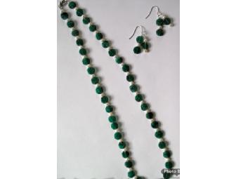 PS 29 Parent Marion Gropen handmade this beautiful necklace and earrings from Aventurine stones, Pearls, and Sterling findings.