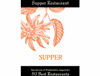 $50 gift card to Supper restaurant located on South St. At Supper restaurant, Chef Mitch Prensky offers upscale modern American cuisine served in a beautiful, relaxed setting. Their urban farmhouse atmosphere is inviting and cozy. Their goal is to serve upscale food in a setting that breaks the traditional fine dining mold. Supper is a place to feel welcomed and relaxed while experiencing a great meal.