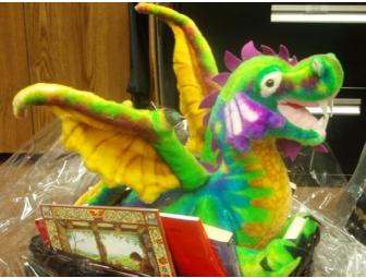 This colorful dragon would brighten up any room. The basket includes nine children's books all including dragons for a wide age range.