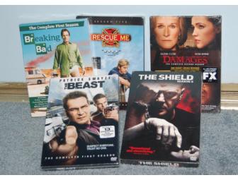 TV Series DVDs; The Shield(season 6) , Damages (season 2), The Beast (season 1), Breaking Bad (season 1) & Rescue Me (season 1)