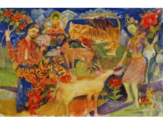 "Bodhisattva Steve". Jarrett Bambery, USA. Watercolor print edition 4/50, signed by the artist. Graphic House Certificate of Authenticity. 25" w x 20" h; matted (24" x 15"). Water soluble ink