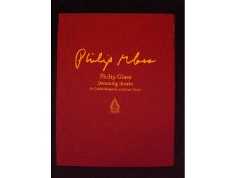 "Dreaming Awake for Gehlek Rimpoche and Jewel Heart". Philip Glass, USA, 2002. An original composition. Compact disc. Limited edition 365/500. Reproduction of piano score. 3 sheets autographed by composer. Archival cloth binder containing compact disc and autographed score. New condition.