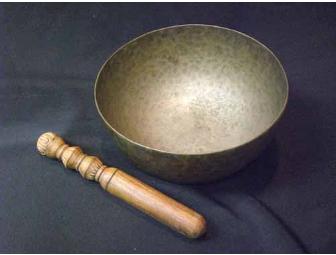 Antique metal singing bowl with stricker. 9 ½"' diameter. Japan.