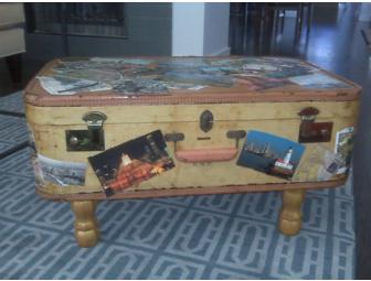 Materials/ Description of Process: Antique leather suitcase, vintage and contemporary Chicago images. The 6th grade students of Ms. O'Hara proudly present a one-of-a-kind antique suitcase side table. This unique decorative side table features both vintage and contemporary images of Chicago composed to create an intermingled vision of Chicago past and present. Open the suitcase to discover our own thoughts about and experiences of life in Chicago. The side table includes an alternate set of legs that allow for the table height to be adjusted.