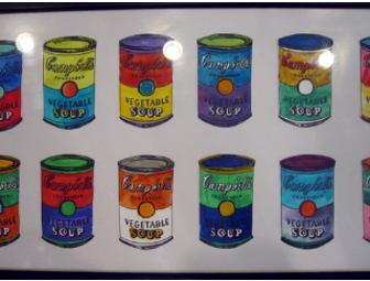 Materials/ Description of Process: Water colors, water color paper. The enthusiastic 7th grade artists explored color, art history, and pop art while creating their Andy Warhol-inspired soup cans. They painted with watercolors on watercolor paper. Using the idea of repetition, they combined each of their individually created soup cans on one backdrop, creating this magnificent 12 x 48 pop art masterpiece!