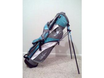Hagen Junior Girls Golf Bag with backpack straps and kickstand. Appropriate for junior girl up to 36" in height. Very light weight! Pink and grey.