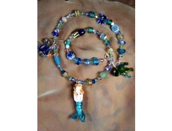 This fun and fabulous necklace is for any Pisces at heart! This 20 inch necklace is accented lampwork beads, Swarovski and Czech crystal with freshwater pearls. Pisces Passion is represents the essence of Deb Rich's artistic expression in this unique jewelry piece. Deb's talent is revealed in each lampwork bead that she creates in her studio. The essence of Deb Rich's artistic expression is revealed in each lampwork bead that she creates in her studio. Deb's beads exhibit her desire to create and inspire change through community outreach. These jewelry pieces are offered exclusively through cMarket to support the fundraising efforts of non-profit organizations. Lampwork glass reflects both the heartfelt passion and interpretative expression of Deb Rich. Her artistic resume includes fantasy sculptures, creatively fashioned from found-objects and recycled materials. Deb's Glass Designs are truly hypnotic, one-of-a-kind pieces that cannot be replicated or manufactured by a machine. Deb only sells jewelry pieces that capture the grace and flow of glass artistry. All jewelry is made with sterling silver or copper findings, Czech or Swarovski Crystals, and various complementary beads, making Deb's Glass Designs positively the best choice.