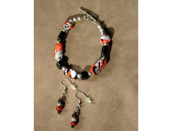 Black and white and red all over. Multi colored beads with silver rondelles add a perfect mixture of color that's sure to spice to up your daily business attire! This darling artisan bracelet is 7.5 inches in length and matching earrings are included with this jewelry set destined to be your favorite accessory! The essence of Deb Rich's artistic expression is revealed in each lampwork bead that she creates in her studio. Deb's beads exhibit her desire to create and inspire change through community outreach. These jewelry pieces are offered exclusively through cMarket to support the fundraising efforts of non-profit organizations. Lampwork glass reflects both the heartfelt passion and interpretative expression of Deb Rich. Her artistic resume includes fantasy sculptures, creatively fashioned from found-objects and recycled materials. Deb's Glass Designs are truly hypnotic, one-of-a-kind pieces that cannot be replicated or manufactured by a machine. Deb only sells jewelry pieces that capture the grace and flow of glass artistry. All jewelry is made with sterling silver or copper findings, Czech or Swarovski Crystals, and various complementary beads, making Deb's Glass Designs positively the best choice.