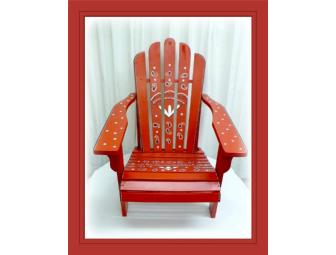This chair is painted red with a western bandana themed design. Black and white designs accentuate the red background that shows a bit of country!