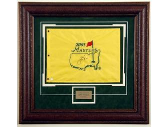 This authentic Masters flag is hand signed by Jack Nicklaus and is beautifully hand framed with a detailed nameplate. Considered one of the more most valued items of golf memorabilia. A certificate of authenticity by Executive Sports Memorabilia is included.