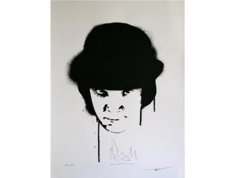 Malcolm McDowell's iconic character from "A Clockwork Orange". Autographed by Malcolm and signed by 2 Cents. These two amazing artists are releasing this limited edition hand pulled serigraph prints.