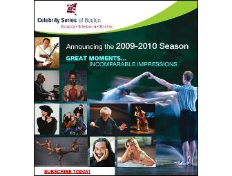 You and a guest will choose seven (7) performances from the greatest variety of performing arts presentation in New England, with your 7-event Mix 'n Match subscription for two to the Celebrity Series of Boston's 2010-2011 season.