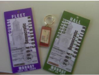 One Honored Guest Convention Hall Pass and One Guest Fleet Center Pass and a key Chain Podium pass (bass with inlay)
