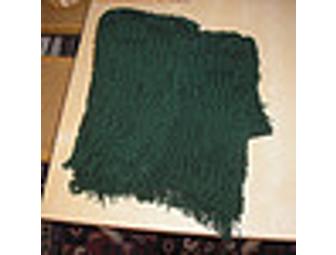 This off-white, handmade afghan is 56"x 60" and has fringe on the 60" ends. Note that the photo is of a similar afghan in green.