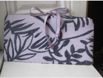 The perfect pick me up for your spring wardrobe! This clutch handbag is made of a lovely lilac and navy fabric with coordinating ribbon and lining. Elegantly designed and beautifully made, this bag will easily go with many outfits and give an extra special touch to your look.