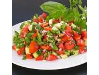 Panzanella is an Italian salad that reaches new heights when made with fresh seasonal ingredients. Lisa received this recipe from an Italian cousin in Italy so you know it's got to be good! Perfect for a ladies brunch or summer get together. Because of the seasonality of this dish, it is only available during the summer months. Serves 10. Generously donated by Taste of St. Perpetua Chef Lisa Hoskins.
