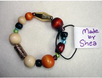 Materials/Description of Process: Ms. Slotnick's early birds made beautiful jewelry! Each preschooler chose beads and arranged them on a beading board, working with parent volunteers to create patterns and symmetry. They then treaded the beads onto a string. The choice of beads included glass, metal, wood, and plastic, in shades of black, brown, green and blue. Each child made his or her own glorious bracelet or necklace.