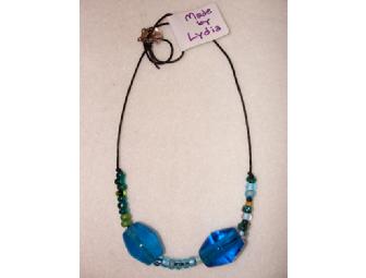 Materials/Description of Process: Ms. Slotnick's early birds made beautiful jewelry! Each preschooler chose beads and arranged them on a beading board, working with parent volunteers to create patterns and symmetry. They then treaded the beads onto a string. The choice of beads included glass, metal, wood, and plastic, in shades of black, brown, green and blue. Each child made his or her own glorious bracelet or necklace.