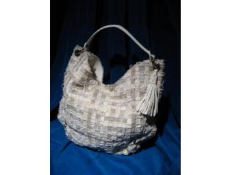 Compliment your summer wardrobe with this beautiful Stuart Weitzman Piercebucket style shoulder bag in ivory.